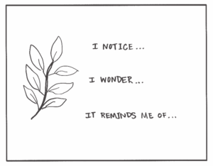 I Notice, I Wonder, It Reminds Me of... is a structure and practice for honing observational skills and practicing active listening and appreciative inquiry. It's a thinking routine that can encourage deeper observations and connections. Participants are encouraged to develop curiosity and engage with their environment.