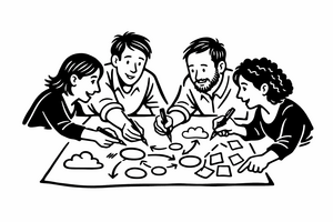 Create a shared visual map of what a group observes, discovers, and plans to act on together. Participants begin by capturing individual observations and patterns related to a question or challenge, then combine (“meld”) these into a collective map that makes insights and action ideas visible to everyone. By moving through stages of noticing what’s present, interpreting why it matters, and identifying next steps, MindMeld helps groups surface rich, shared understanding and align on concrete actions before moving forward.