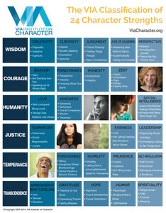 This activity is based on the VIA classification of character strengths developed by Peterson & Seligman (2004), and is ideal for team-building, coaching, or personal development workshops.