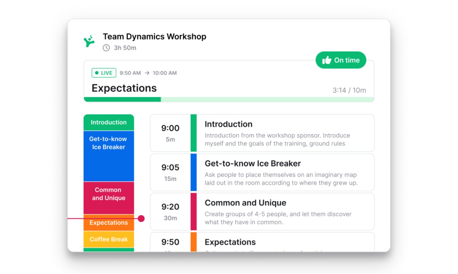 With an intuitive drag-and-drop agenda planner that calculates timing, SessionLab makes session design simple.