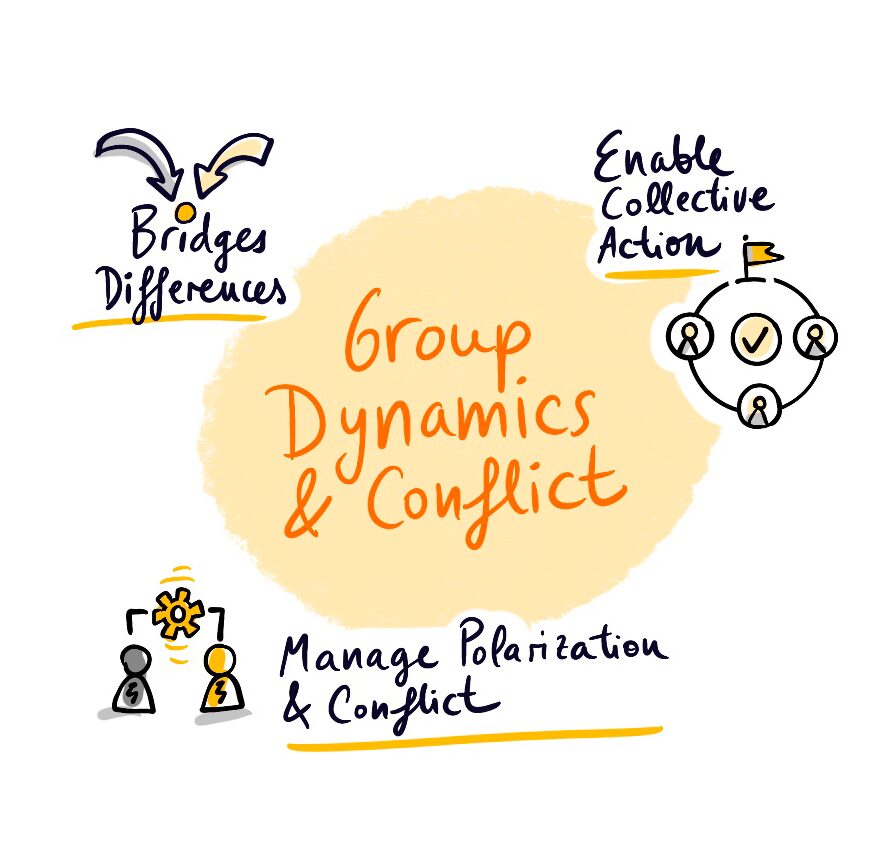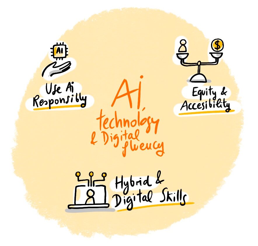 Another strong thread emphasises societal relevance — navigating polarization, supporting sustainable transitions, and holding spaces for dialogue at scale. The skills of the future, in this view, combine facilitation craft with leadership capacity, ethical awareness and technological literacy.