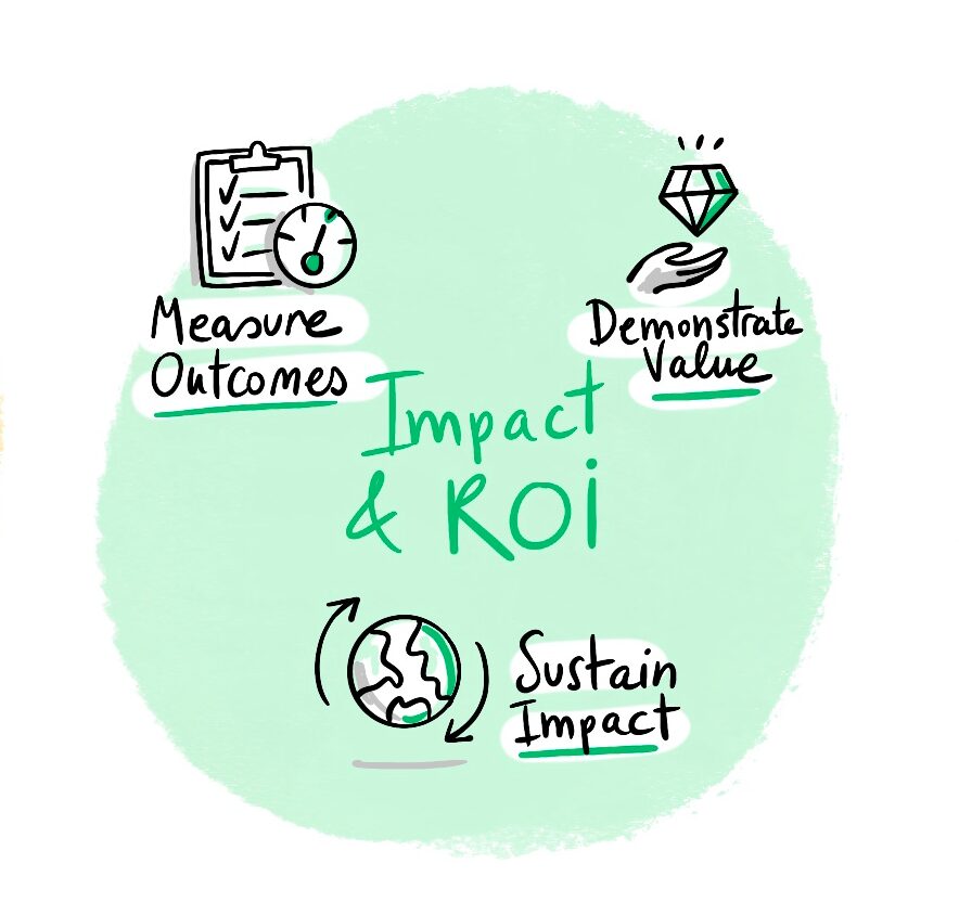 Evaluating impact starts long before a session begins. Questions about impact should be discussed in advance of a session, and the story of what happened and what changed should follow. Considerations around impact should come at every stage of the process, not as a last-minute add-on.