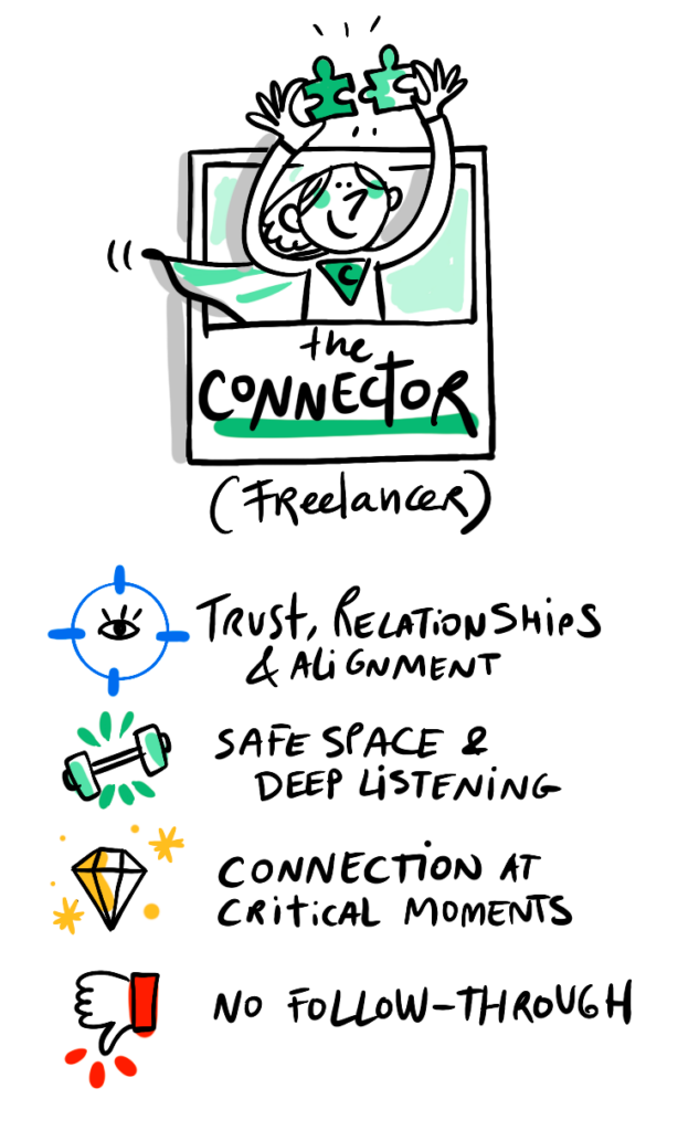 Taken together, these patterns show how facilitators contribute across different layers of organizational life: with the risk of simplifying, we can say that freelancers nurture people, agencies enable alignment, and in-house teams drive operational and strategic progress.