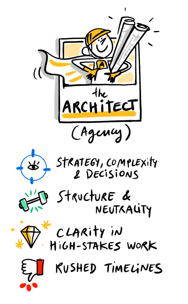 Together, these patterns show how organizations rely on facilitators differently—agencies for fast-paced cycles of strategic work, in-house teams for ongoing internal improvement, and freelancers for key developmental moments.