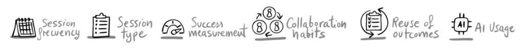 Unsurprisingly, frequency increases with experience: beginners work sporadically, intermediates establish a steady monthly rhythm, and experienced facilitators operate at a continuous weekly cadence (with 38% of practitioners designing sessions a few times per month or more). Employment type also shapes intensity: agencies show the highest weekly activity (25%), in-house teams maintain consistent monthly practice, and freelancers’ workloads vary more widely.