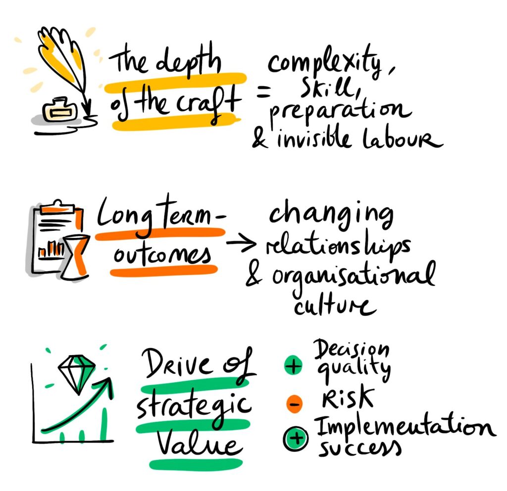 The way facilitators talk about their craft and the way clients and team experience can seem like different languages. The challenge for the field may well be less about impact itself, more about making that impact more visible and more widely understood.